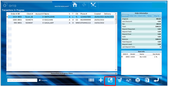 2. The Transactions in Progress screen will open. Select the suspended transaction from the list of transactions provided, then click the Edit icon.